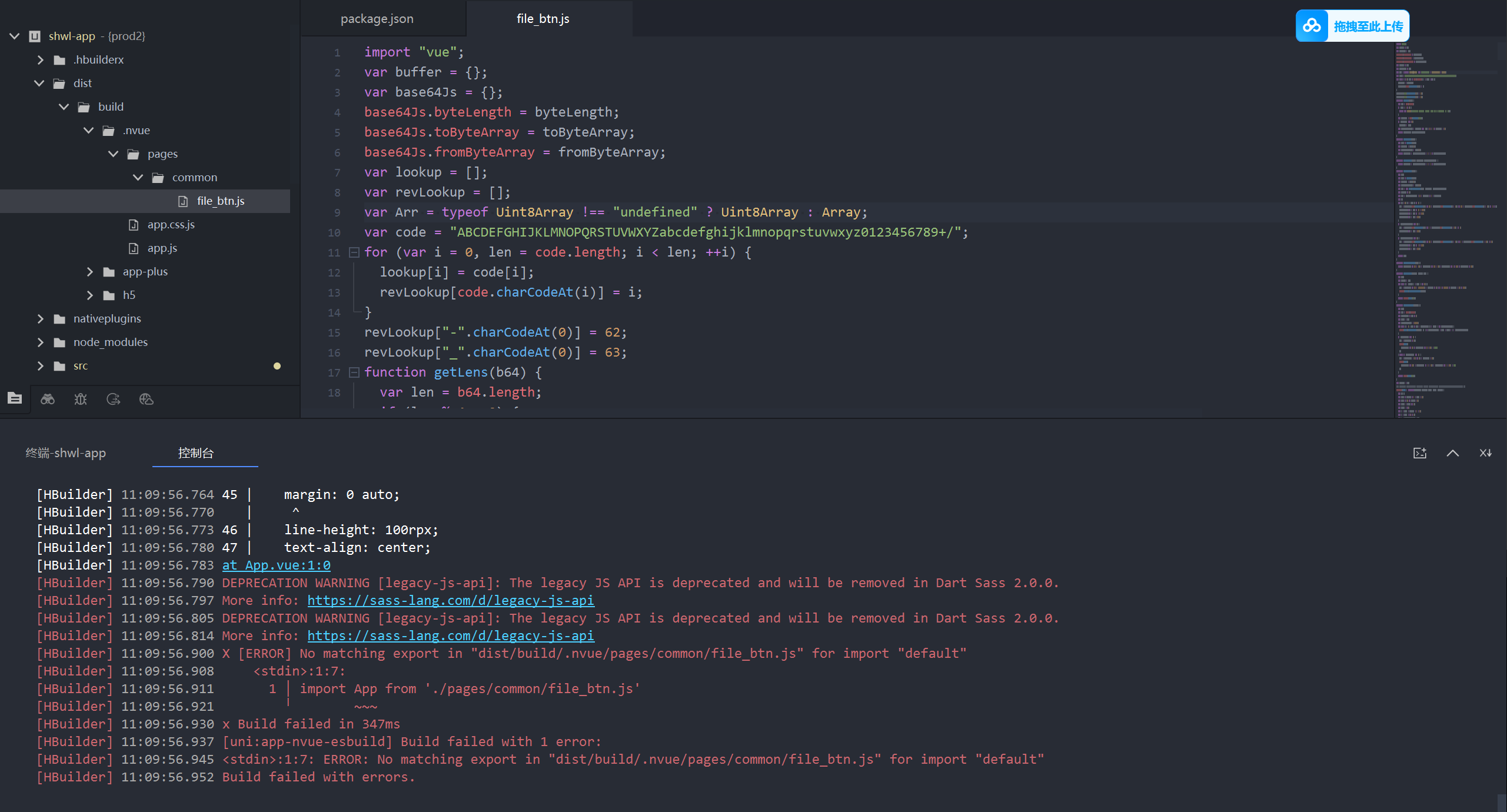 [HBuilder] 11:09:56.945 <stdin>:1:7: ERROR: No matching export in "dist/build/.nvue/pages/common/file_btn.js" for import "default"