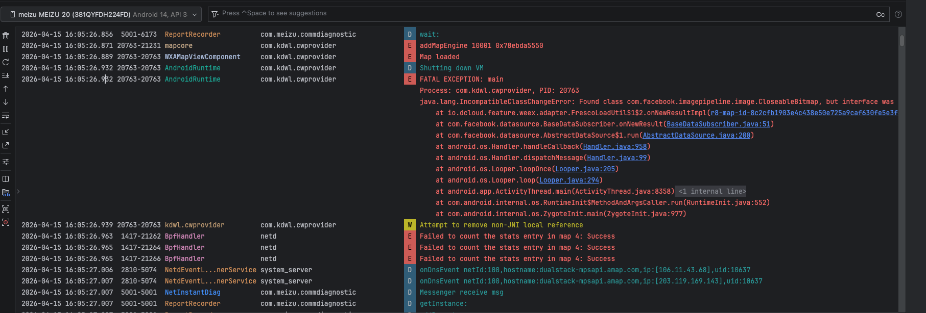 2026-04-15 16:11:16.191 21576-21971 mapcore com.kdwl.cwprovider E addMapEngine 10001 0x78ebda3090