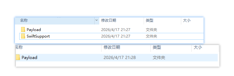 如果项目中使用了基于Swift开发的原生插件(如推送功能、某些原生插件),或者配置了需要Swift环境的功能,打包时会自动添加Swift支持。如果后续移除了这些功能或插件,SwiftSupport文件夹就会消失。