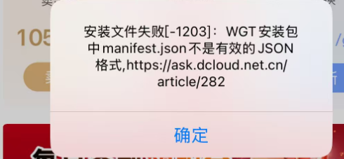 通过云打包苹果ipa格式的安装包,在应用内下载安装更新,提示 WGT安装包中 manifest.json 不是有效的 JSON格式[-1203]