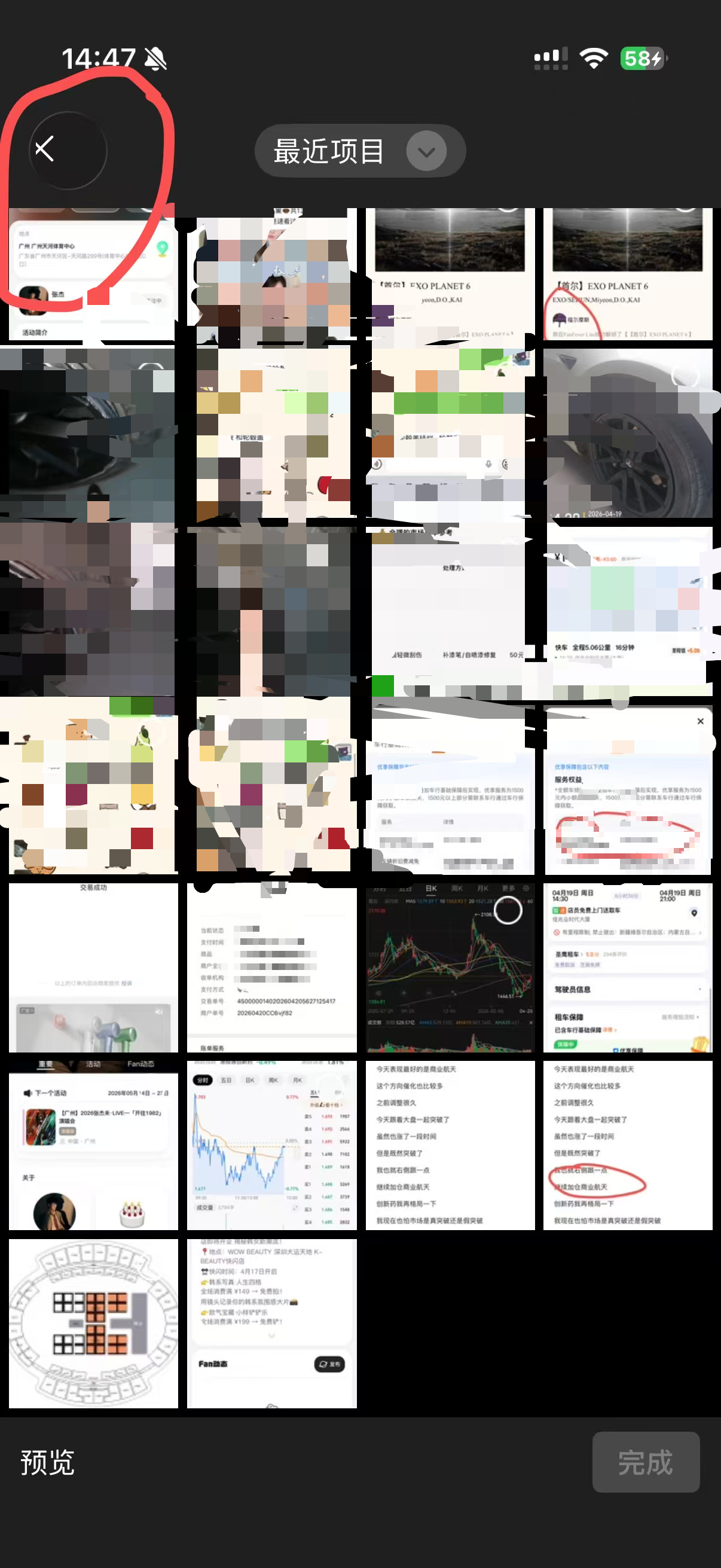 - 是指右上角的"取消/完成"按钮?还是相册预览界面的关闭按钮?