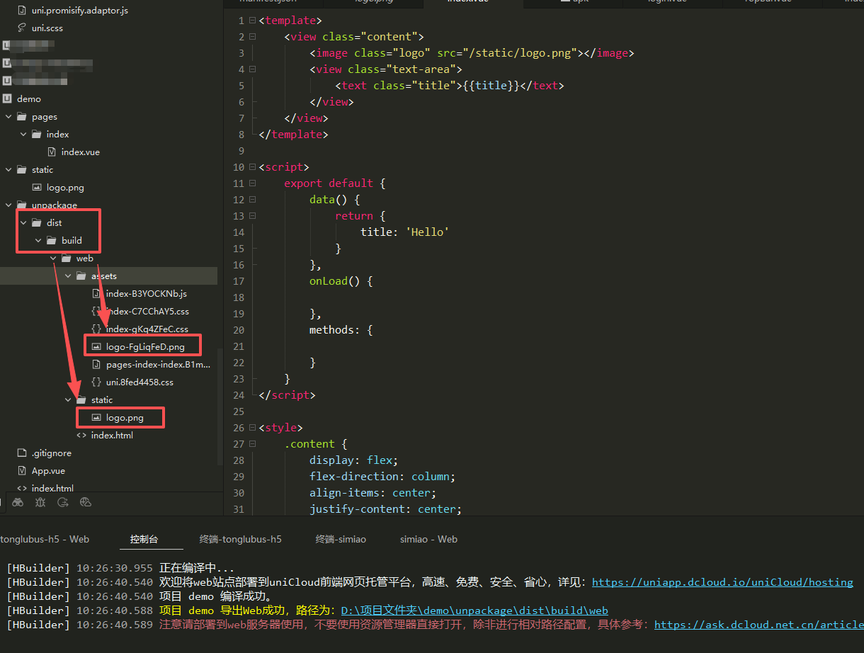 项目打包H5,static里引用的图片和字体,会在assert文件夹中以文件名+hash值的方式重复打包