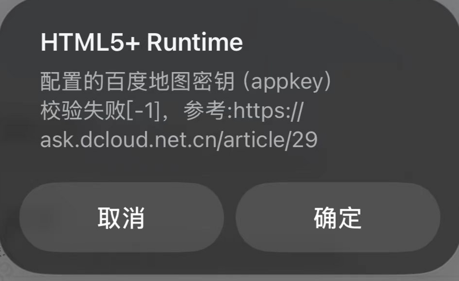 appkey_android:百度地图开放平台申请的Android平台Key appkey_ios:百度地图开放平台申请的iOS平台Key 请确认您配置的是 appkey_ios(iOS平台专用Key),而不是Android的Key。配置文档参考