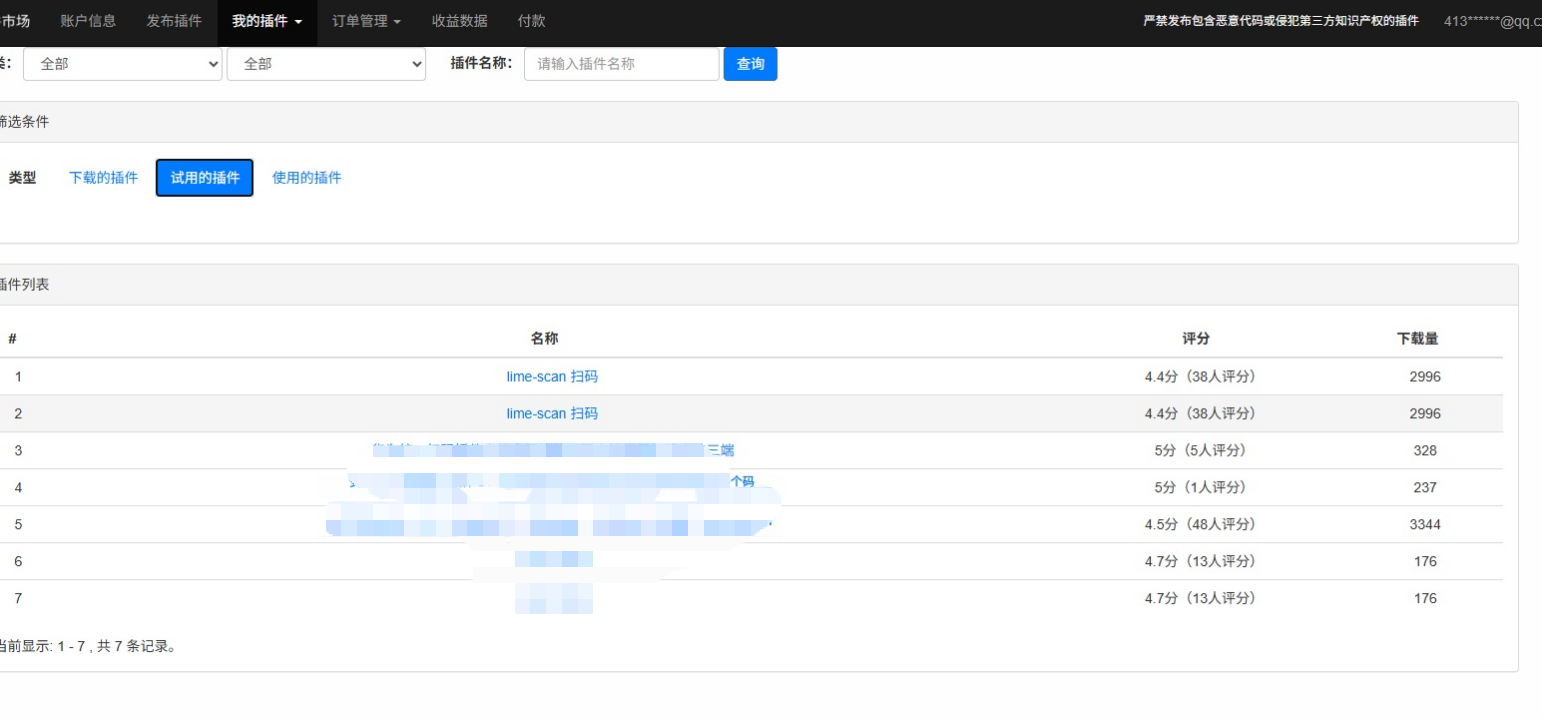- 试用插件无有效期限制,但功能受限