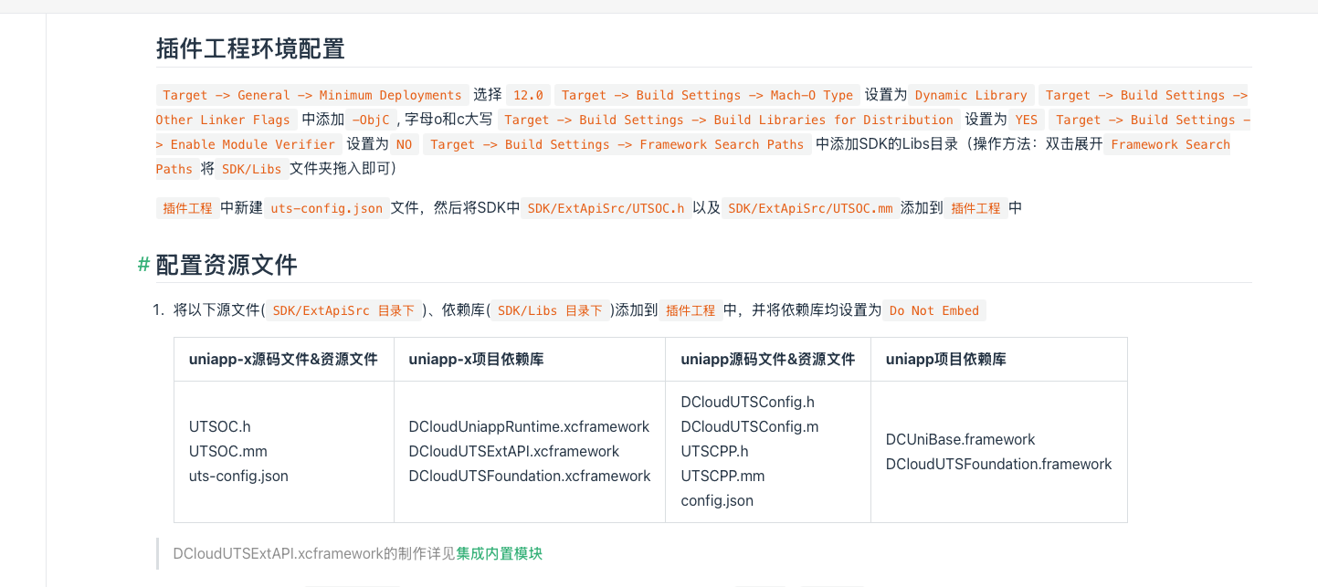 你们文件写着,插件工程中新建uts-config.json文件,然后将SDK中SDK/ExtApiSrc/UTSOC.h以及SDK/ExtApiSrc/UTSOC.mm添加到插件工程中 你们看看截图,哪有文件,能有个人回话吗,不要都用ai替代,群里是ai回答让我截app日志,这有毛关系,还有我怎么知道你们文档是不是最新的,你们就这一份说明,让我上哪找最新文档去 , 能不能发一个完整可用能够执行下去的 离线打包配置uts插件 教程。