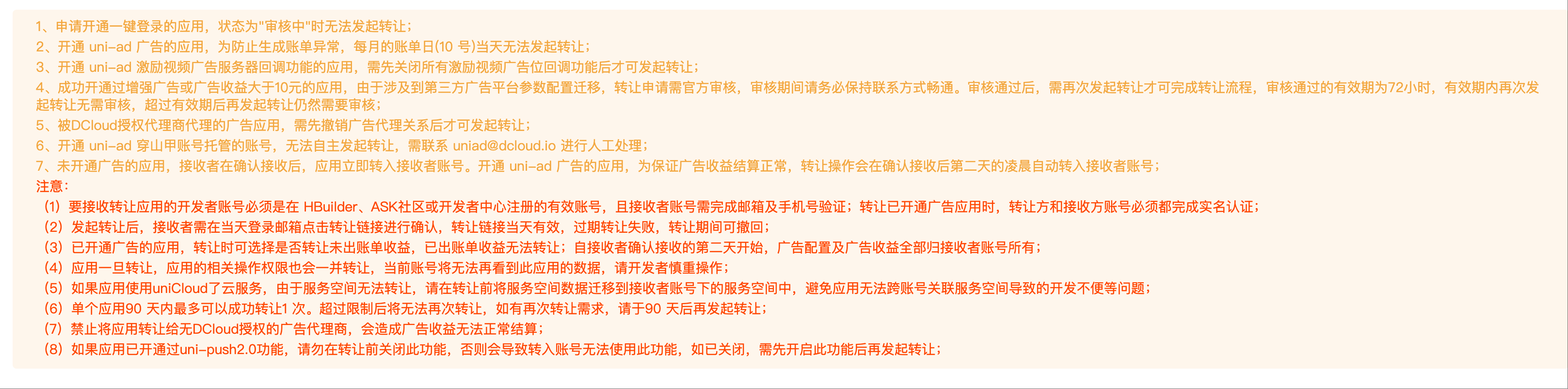 - 应用转移前建议确认插件授权情况,特别是付费原生插件的绑定关系