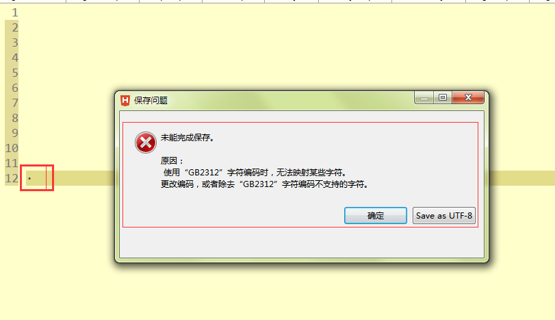 详细问题描述:当文档中有这个“·”字符串,无法保存,必须要切换成utf8编码。这样的话,无法保存代码,搞的我只好用其他编辑器了。我的文件全部是gbk的,不可能为了你们这个问题,二换成utf8的。能不能不要有这个提示,我在其他工具中使用没有这个提示。