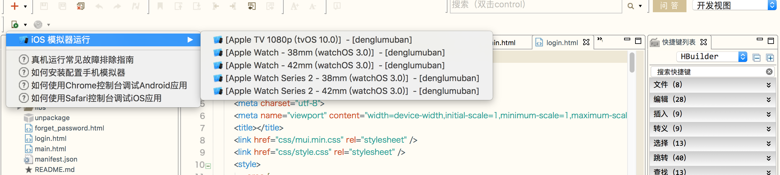 我将xcode升级到8以后,在hbuilder的模拟器列表里没有iphone的模拟器 只有tv和watch的模拟器。
