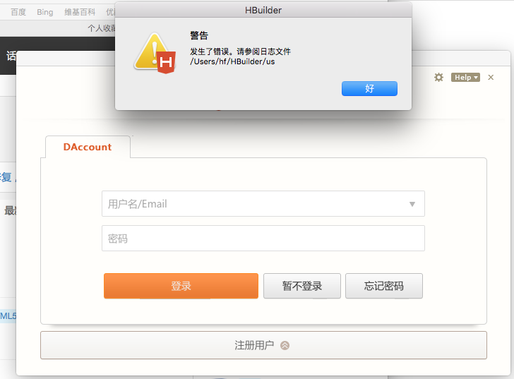详细问题描述 [内容]IDE无法启动,发生错误 重现步骤 [步骤]打开IDE [结果]无法启动 [期望]正常启动 运行环境 [系统版本] OS X El Capitan [浏览器版本] [IDE版本]最新版与旧版都如此 [mui版本] 附件 [代码片段] [安装包] 联系方式 [QQ]734592090 [电话]