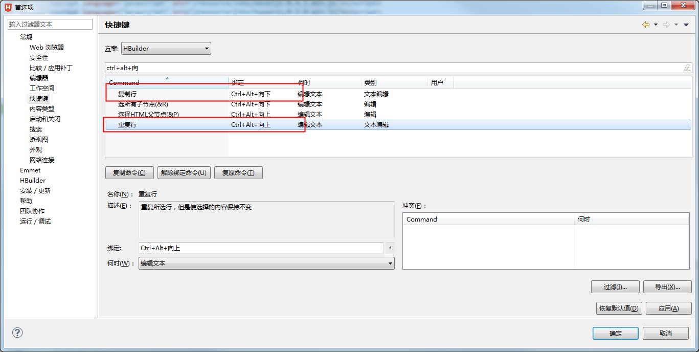 即使没有拦截,C+A+上下在HBuilder里的快捷定义是HTML中选择上一个或下一个HTML节点。因为存在拦截情况,所以我们没有给这个快捷键设置常用的功能。