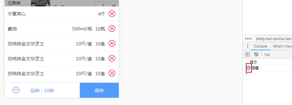 我就想要个MUI框架,点击显示,再次点击隐藏的方法。。有朋友给我来了一段JQ代码。要是直接用JQ的话,我就不来这里问了!****