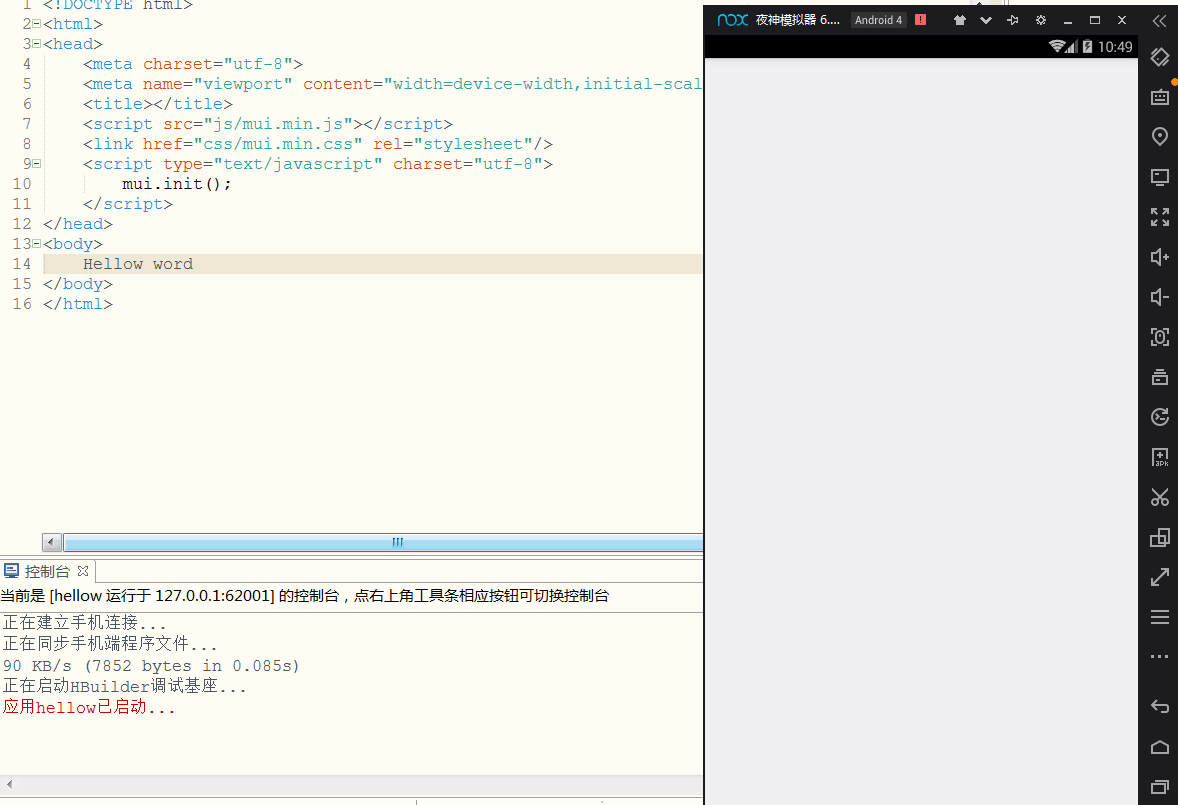 刚开始 就遇到了问题 求指教 输入 “Hellow word” 后 在夜神模拟器是空白