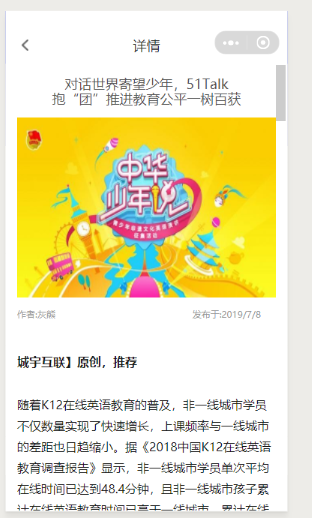 推动教育普惠,实现教育公平,是51Talk一贯坚持并身体力行的创业初心,“让每个孩子都有能力对话世界”是51Talk奋斗不懈的企业使命。2019中华少年说,从全国8个赛区的激烈角逐,到48名晋级选手决战北京半决选,直至最终8位中华非遗少年决战英伦、游学大不列颠,每段经历都值得参与者铭记,每个阶段的舞台也都将是与未来同行的新起点。而整个2019中华少年说也将成为51Talk抱“团”共促教育公平的一次卓有成效的探索。