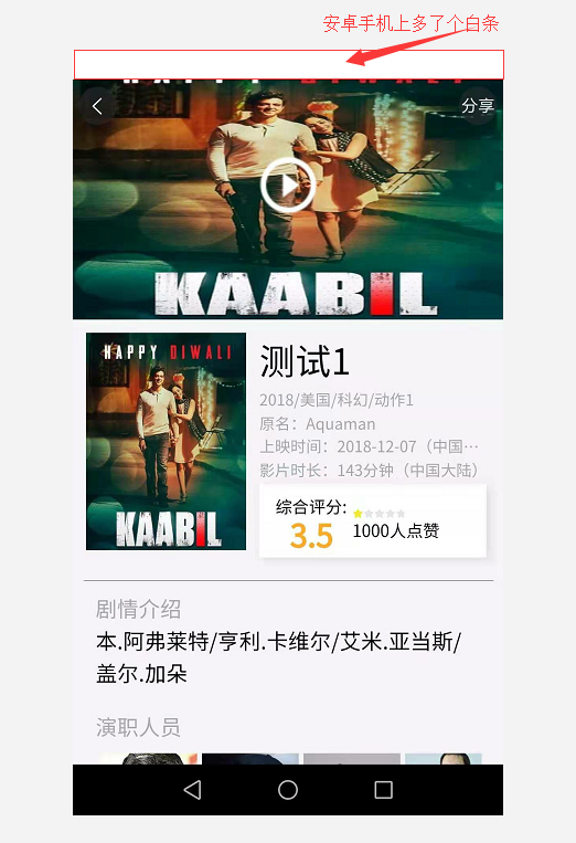 华为p9,导航栏设置为"transparent"-透明渐变,顶部会有一个白色的横条,iphone手机正常。