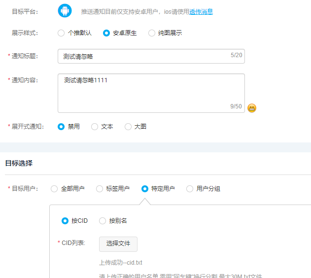 java后台推送通知栏结果和个推后台一样
