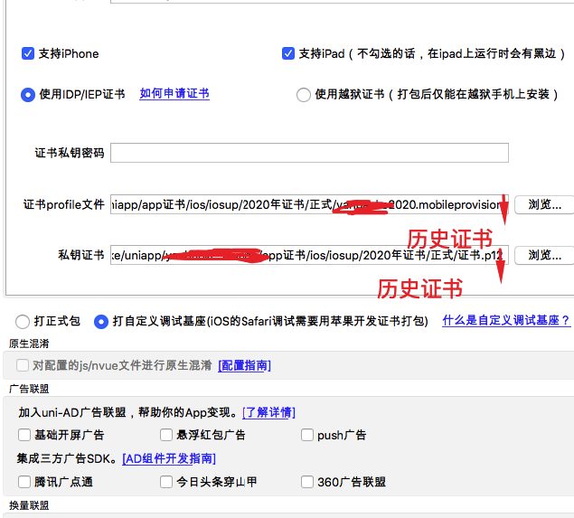 【报Bug】功能需求 云打包界面ios选项增加证书记录 方便打自定义与正式 不用再去选择