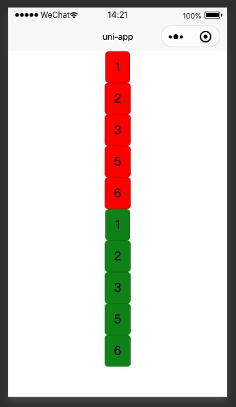 代码提示中默认的v-for是带一个:key="item.id"如果这个id不存在, 则编译到微信小程序上会造成列表方法数据传递失效, 失效的数据就是下面的item, 点击红色按钮会打印undefined, 绿色按钮会打印相对应的数字, 除了微信小程序端 iOS端和网页均正常